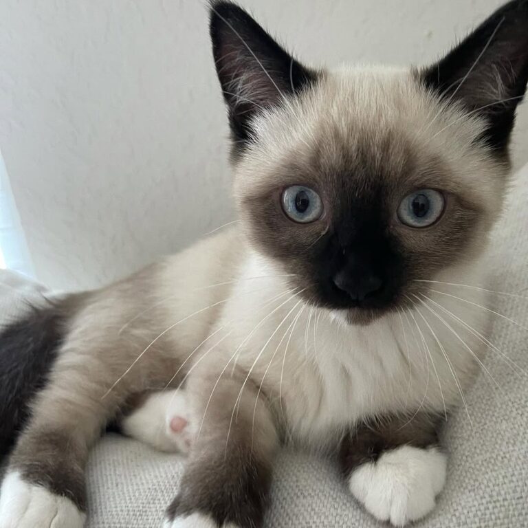 ITSY is a delightful blend of Ragdoll sweetness and Munchkin charm. With her short little legs and striking blue eyes, she turns heads wherever she goes. Don’t let her petite frame fool you, she’s full of playful energy and kitten curiosity.
